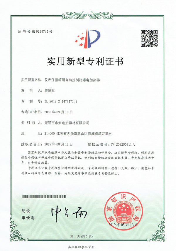 ★ 永安是中国在线分析仪器协会理事单位,江苏省民营科技企业,通过并全面贯彻ISO9001质量体系,多个产品获得CCC防爆认证,CNEx、CJEx、ZJEx防爆认证,ATEx防爆认证,获得多项中国专利、计算机软著。